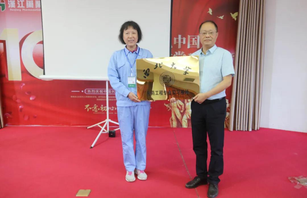 黃濤總監(jiān)主持見面會,并對漢江藥業(yè)歷史沿革、企業(yè)實力、人才培養(yǎng)概況做了介紹,隨后薛偉明教授介紹了西北大學(xué)化工學(xué)院的師資團(tuán)隊、科研項目、科研平臺及人才培養(yǎng)等情況,并從創(chuàng)新人才培養(yǎng)模式、開發(fā)校企合作課程、共建制藥創(chuàng)新實習(xí)實訓(xùn)基地等方面作了交流。最后雙方共同進(jìn)行了校企聯(lián)合培養(yǎng)基地授牌儀式。